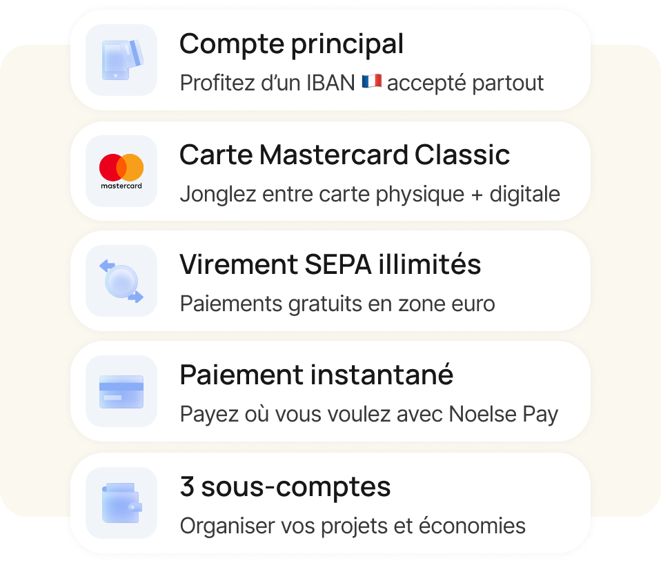 - 1 compte principal - Profitez d'un IBAN 🇫🇷 accepté partout